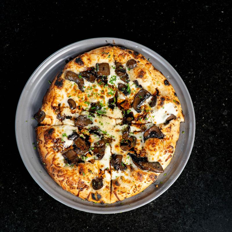 Local mushrooms, roasted garlic cream sauce, herbs, fontina cheese.