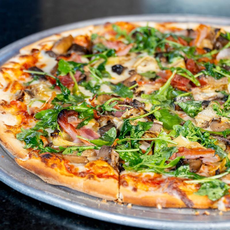 Bianco DiNapoli tomato sauce, mushrooms, artichokes, prosciutto, arugula